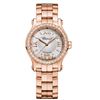 Model: 274893-5004 - CASE = [Material:18kt Rose Gold], [Case Diameter:30], [Bezel:Fixed with Diamonds], [Case Back:Skeleton], [Water Resistant:30 Meters - 100 Feet], [Crystal:Scratch Resistant Sapphire], DIAL = [Color:Silver], MOVEMENT = [Type:Automatic], [Crown:Push In], BAND = [Clasp:Hidden Folding], [Type:18kt Rose Gold], (Usually ships in 1 to 2 weeks.)