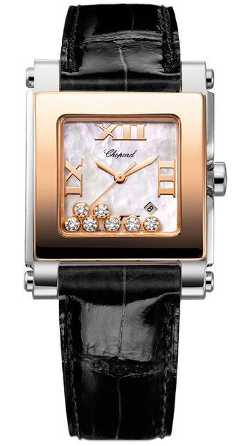 Model: 278497-9003 - CASE = [Material:Stainless Steel & Gold], [Case Diameter:30], [Water Resistant:30m/100ft], [Crystal:Scratch Resistant Sapphire], DIAL = [Color:Mother of Pearl], MOVEMENT = [Type:Battery Powered Quartz], BAND = [Clasp:Tang Buckle], [Type:Alligator/Crocodile Leather Black], (Usually ships in 1 to 2 weeks.)