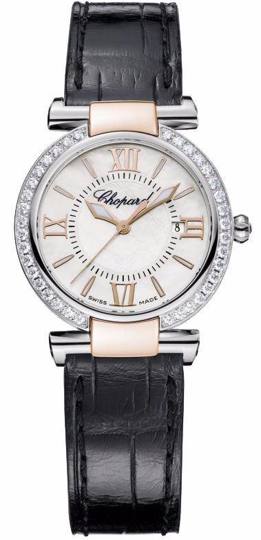 Model: 388541-6003 - CASE = [Material:Stainless Steel & Gold], [Case Diameter:28], [Case Thickness:9mm], [Case Back:Solid], [Water Resistant:50 Meters - 150 Feet], [Crystal:Scratch Resistant Sapphire],; DIAL = [Color:Mother of Pearl],; MOVEMENT = [Type:Battery Powered Quartz],; BAND = [Clasp:Tang Buckle], [Type:Alligator/Crocodile Leather Black], (Usually ships in 1 to 2 weeks.)