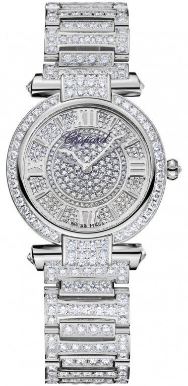 Model: 384280-1002 - CASE = [Material:18kt White Gold], [Case Diameter:28], [Case Thickness:9mm], [Case Back:Solid], [Water Resistant:50 Meters - 150 Feet], [Crystal:Scratch Resistant Sapphire], DIAL = [Color:Diamonds], MOVEMENT = [Type:Manual Winding], BAND = [Clasp:Hidden Folding Clasp], [Type:18kt White Gold Diamonds], (Usually ships in 1 to 2 weeks.)