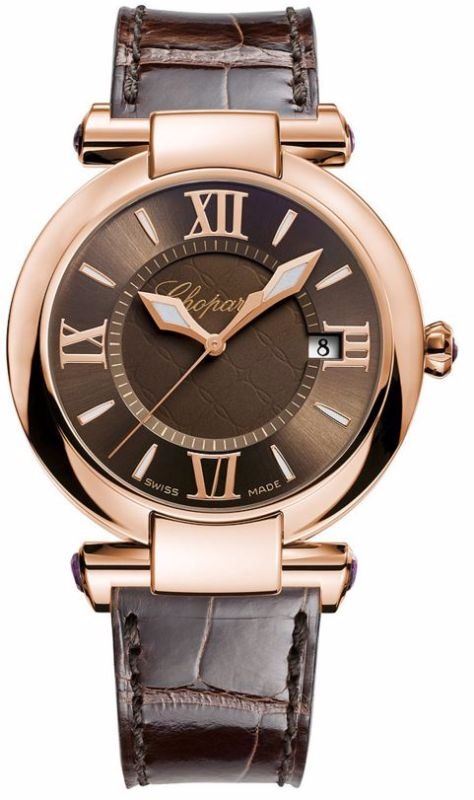 Model: 384221-5009 - CASE = [Material:18kt Rose Gold], [Case Diameter:36], [Case Thickness:9mm], [Bezel:Fixed], [Case Back:Solid], [Water Resistant:50 Meters - 165 Feet], [Crystal:Scratch Resistant Sapphire],; DIAL = [Color:Brown],; MOVEMENT = [Type:Quartz], [Crown:Push In],; BAND = [Clasp:Tang], [Type:Brown Leather], (Usually ships in 1 to 2 weeks.)