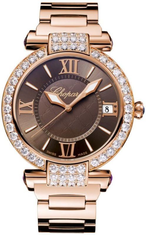 Model: 384241-5008 - CASE = [Material:18kt Rose Gold], [Case Diameter:40], [Case Thickness:10.5mm], [Bezel:Fixed with Diamonds], [Case Back:Skeleton], [Water Resistant:50 Meters - 165 Feet], [Crystal:Scratch Resistant Sapphire],; DIAL = [Color:Brown],; MOVEMENT = [Type:Automatic], [Crown:Push In],; BAND = [Clasp:Hidden Folding], [Type:18kt Rose Gold], (Usually ships in 1 to 2 weeks.)