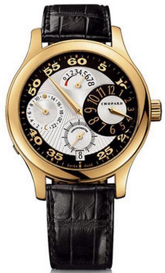 Model: 161874-0001 - CASE = [Material:18kt Yellow Gold], [Case Diameter:39.5], [Bezel:Fixed], [Case Back:Solid], [Water Resistant:30 Meters - 100 Feet], [Crystal:Scratch Resistant Sapphire], DIAL = [Color:Silver And Black], MOVEMENT = [Type:Manual Winding], [Crown:Push Down], BAND = [Clasp:Deployment], [Type:Black Leather], (Usually ships in 1 to 2 business days.)