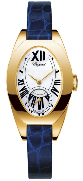Model: 127228-0001 - Case,; MATERIAL18KT YELLOW GOLD = [Case Diameter24], [BezelFixed], [Case BackSolid], [Water Resistant30 Meters - 100 Feet], [CrystalScratch Resistant Sapphire], Dial,; COLORWHITE = Movement,; TYPEBATTERY POWERED QUARTZ = Band,; CLASPTANG BUCKLE = [TypeCrocodile Blue Leather], (Usually ships in 1 to 2 weeks.)