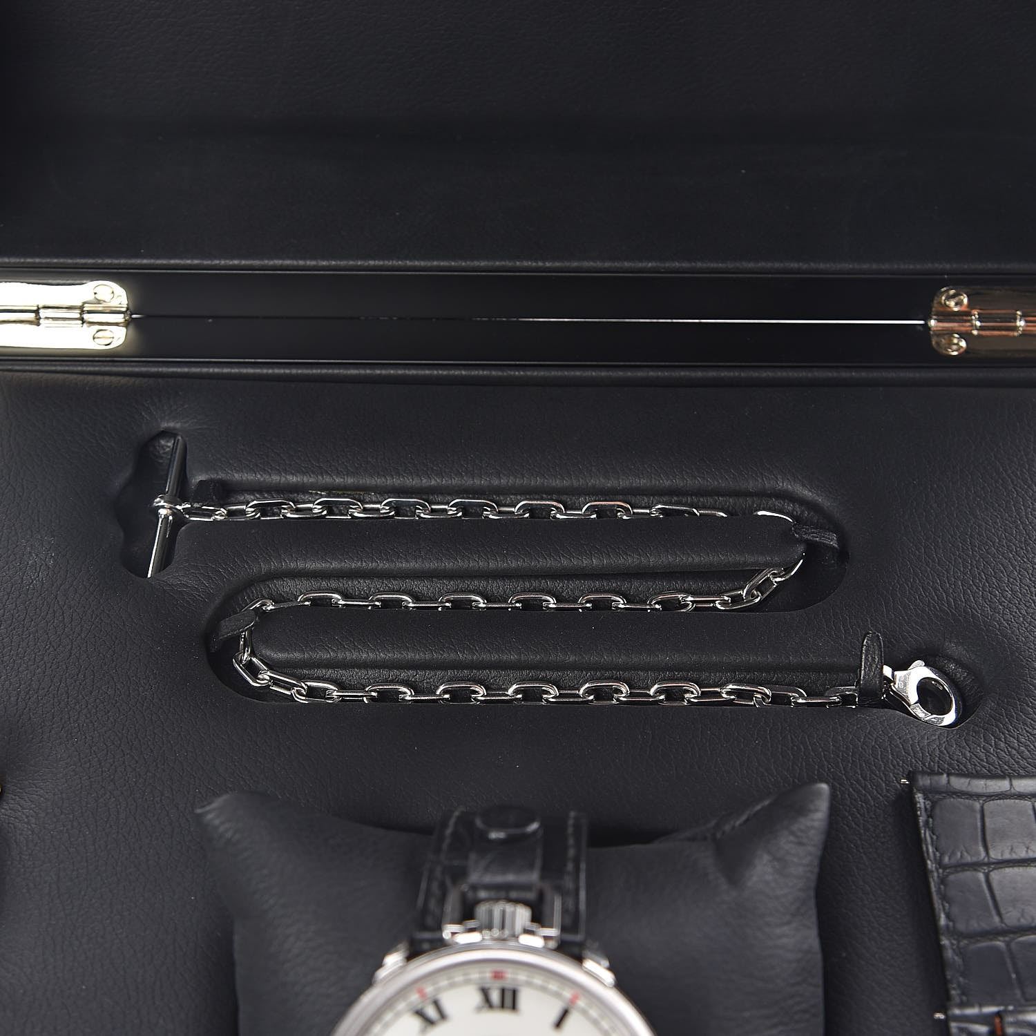 Additional accessories include an 18 karat white gold pocket watch chain and an additional crocodile strap.
