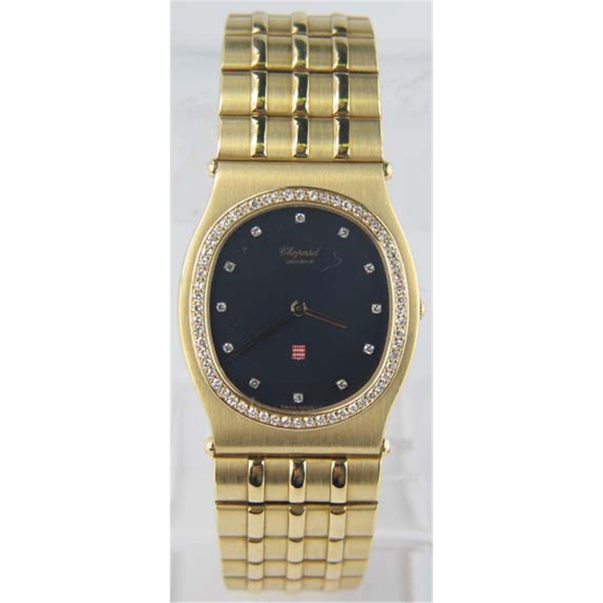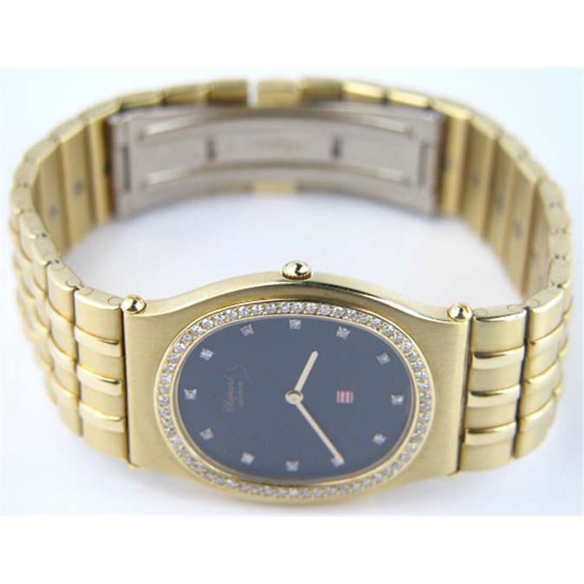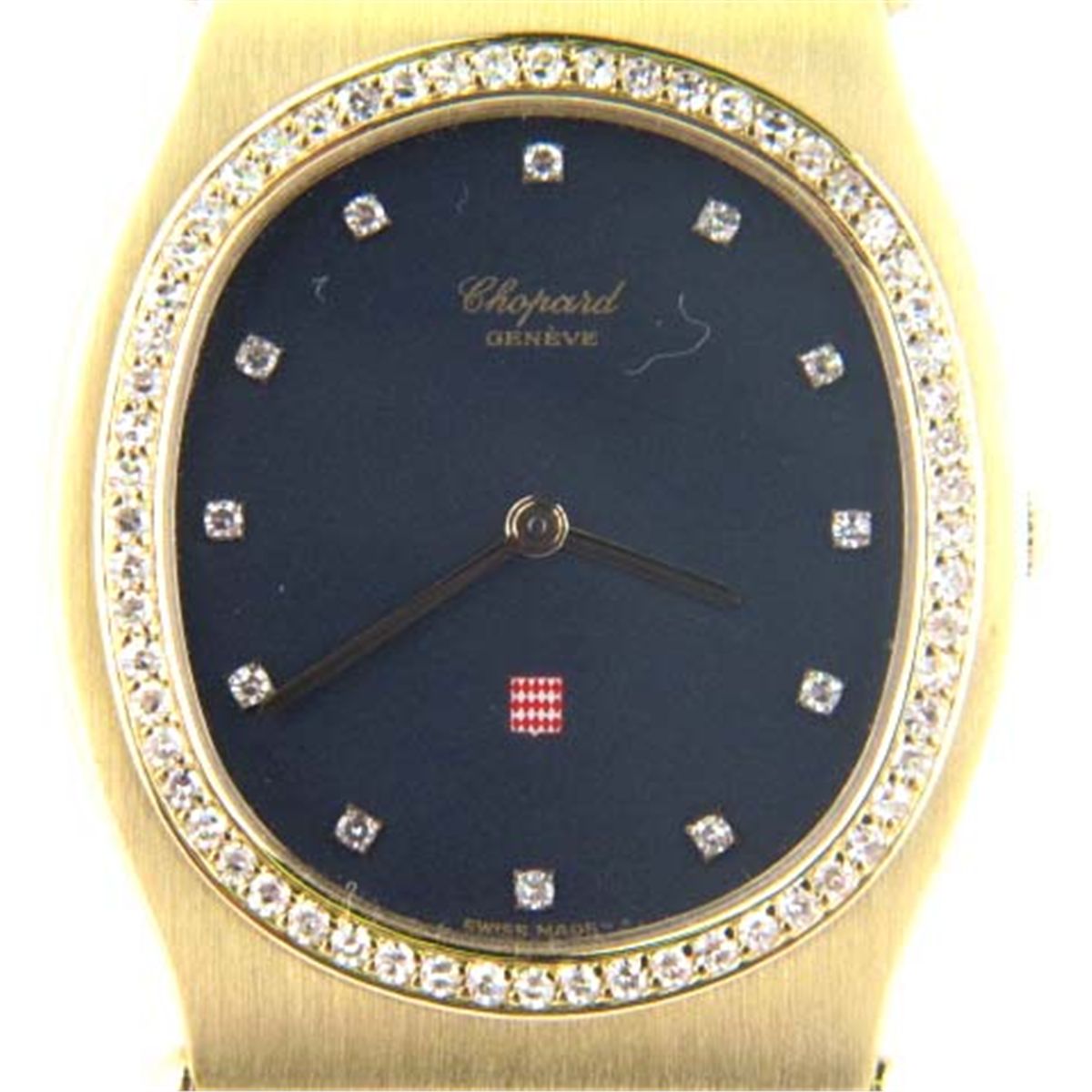 Chopard Monte-Carlo 18K Yellow Gold Dialmond Women Watch.The total weight of the watch is 139.5 grams.The total weight of the diamond is 0.5 ct approximately, G color, VS clarity.The size of the watch's head is 35 x 30 mm. 5 mm in thick.The length of the watch is 6.5".Water Resistant.Swiss Made.?There is "750" stamp on it.
