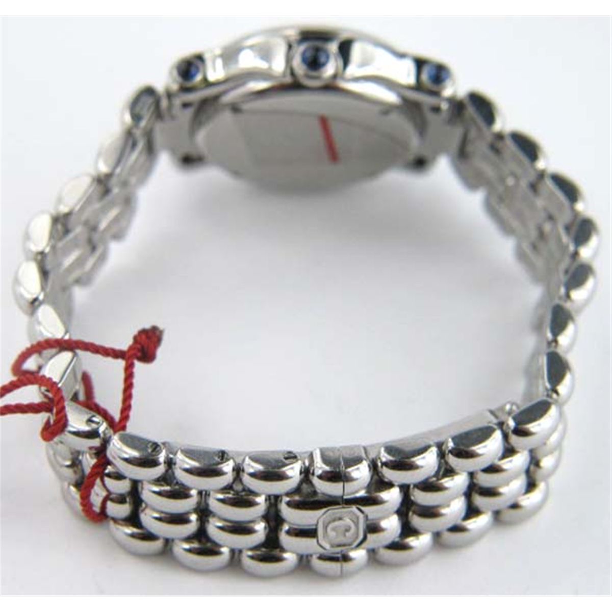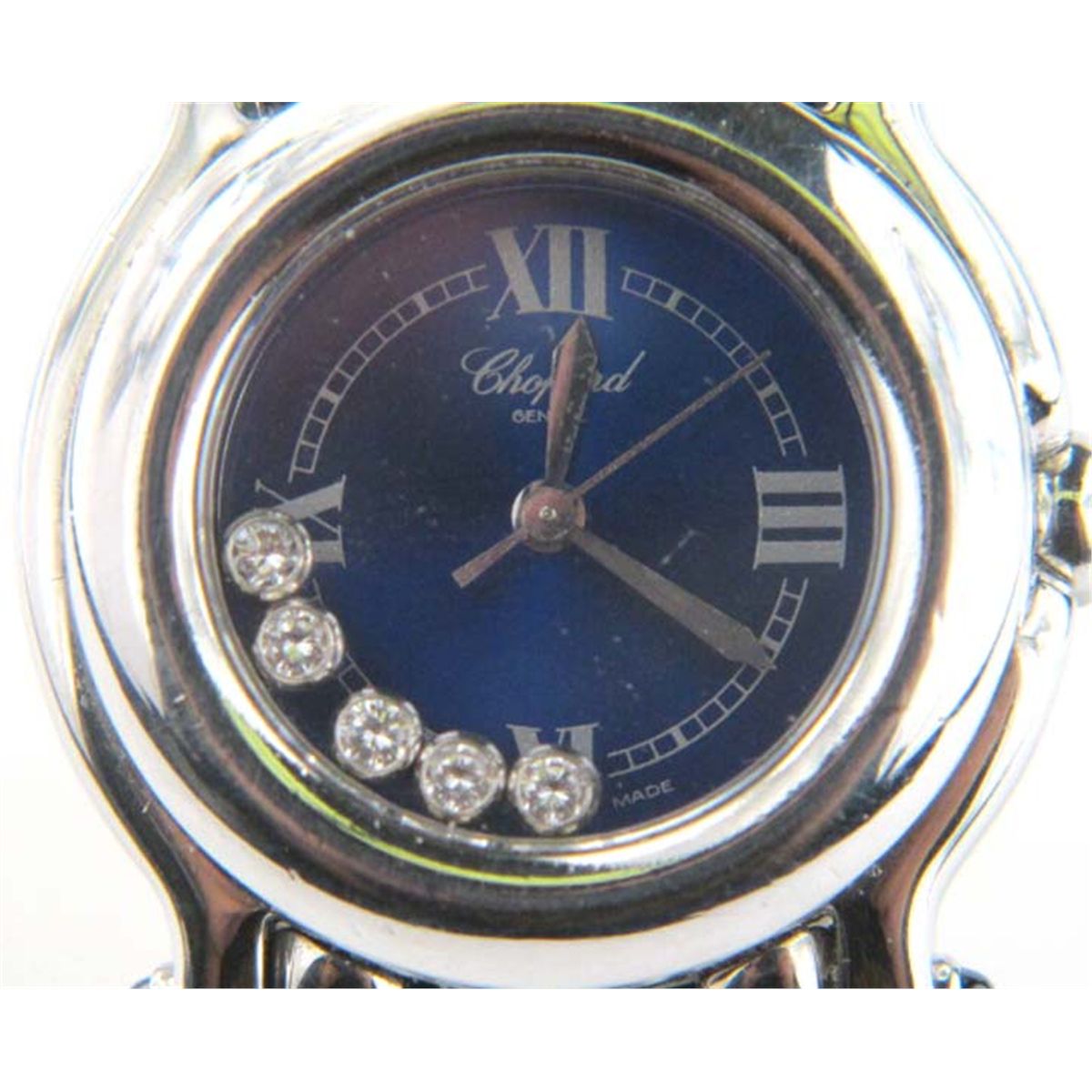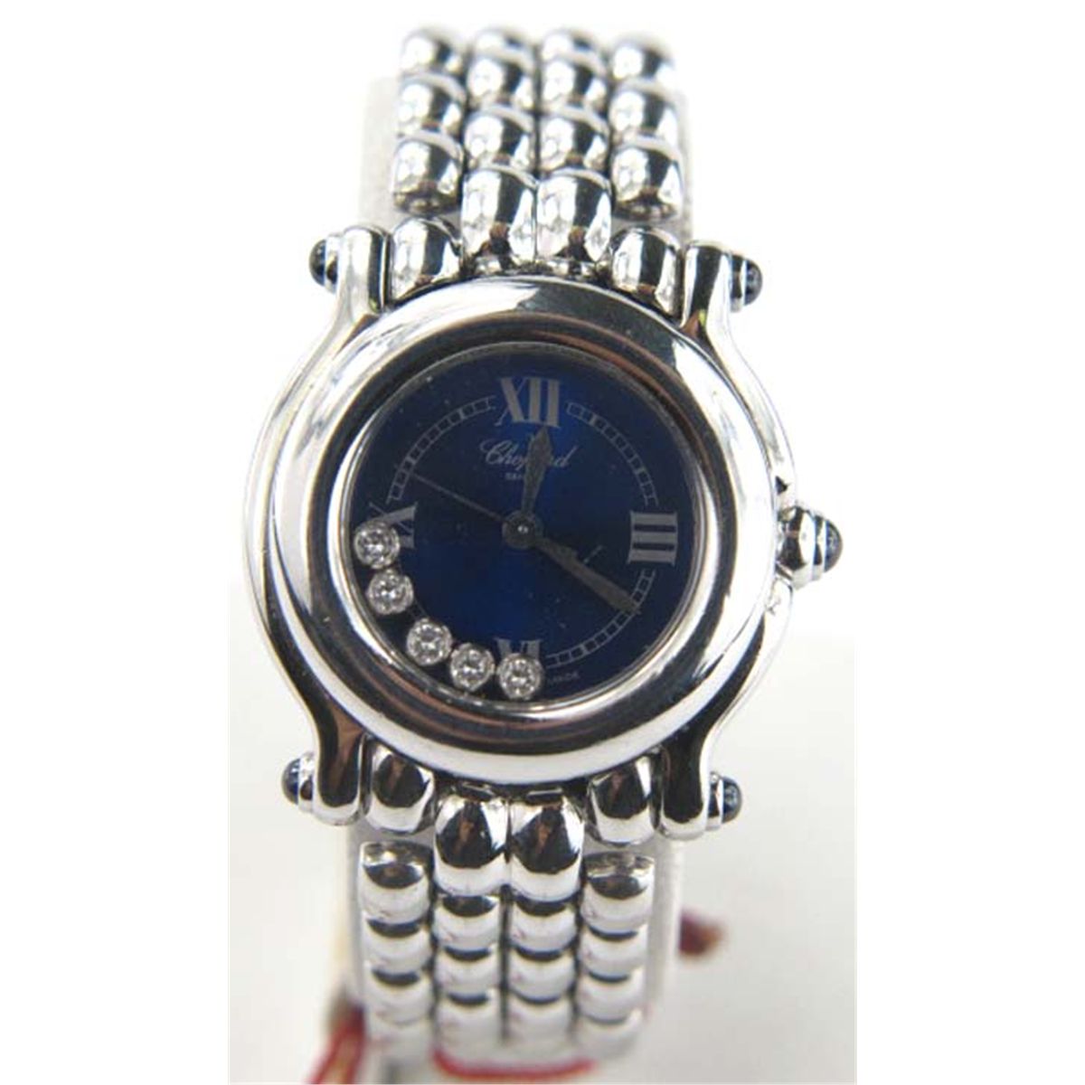 Chopard Stainless Steel Diamond Watch.The total weight of the watch is 58.1 grams.The head of the watch size is 24 x 24 mm. Thickness is 9 mm.Chain is 14 mm wide.The length of the watch is 7".Swiss Made.