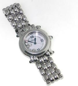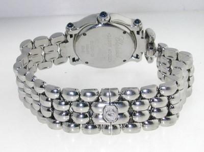 Chopard Stainless Steel Happy Diamonds Watch.Watch's Weight : 61.2 grams.Total weight of diamond: 0.25 cts, H color, VS clarity.The length of watch: 5.5".Swiss made