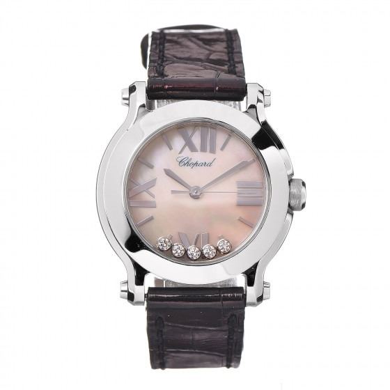 Model: Stainless Steel Alligator Mother of Pearl Diamond 30mm Happy Sport Quartz Watch