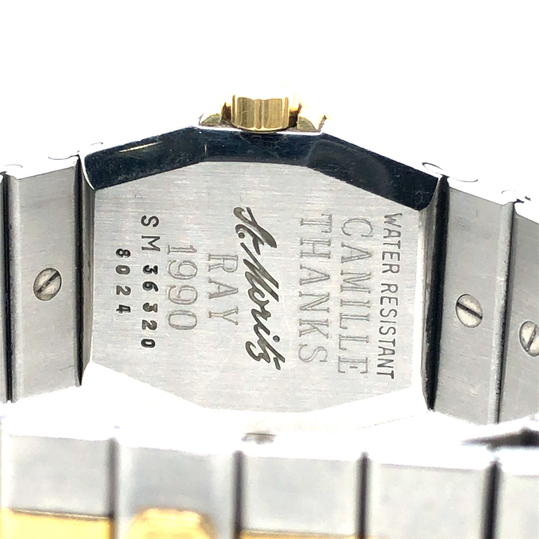 OVERALL CONDITION: Good, Abrasions to case and band consistent with age, watch is not running. Engraving on the back & quot;Camille thanks Ray 1990& quot;.