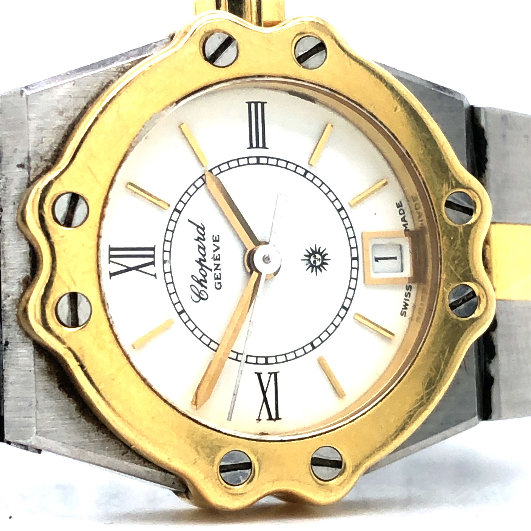 DESCRIPTION DETAIL:& nbsp; A wonderful Two Tone Chopard timepiece featuring a white stick dial with date.& nbsp;