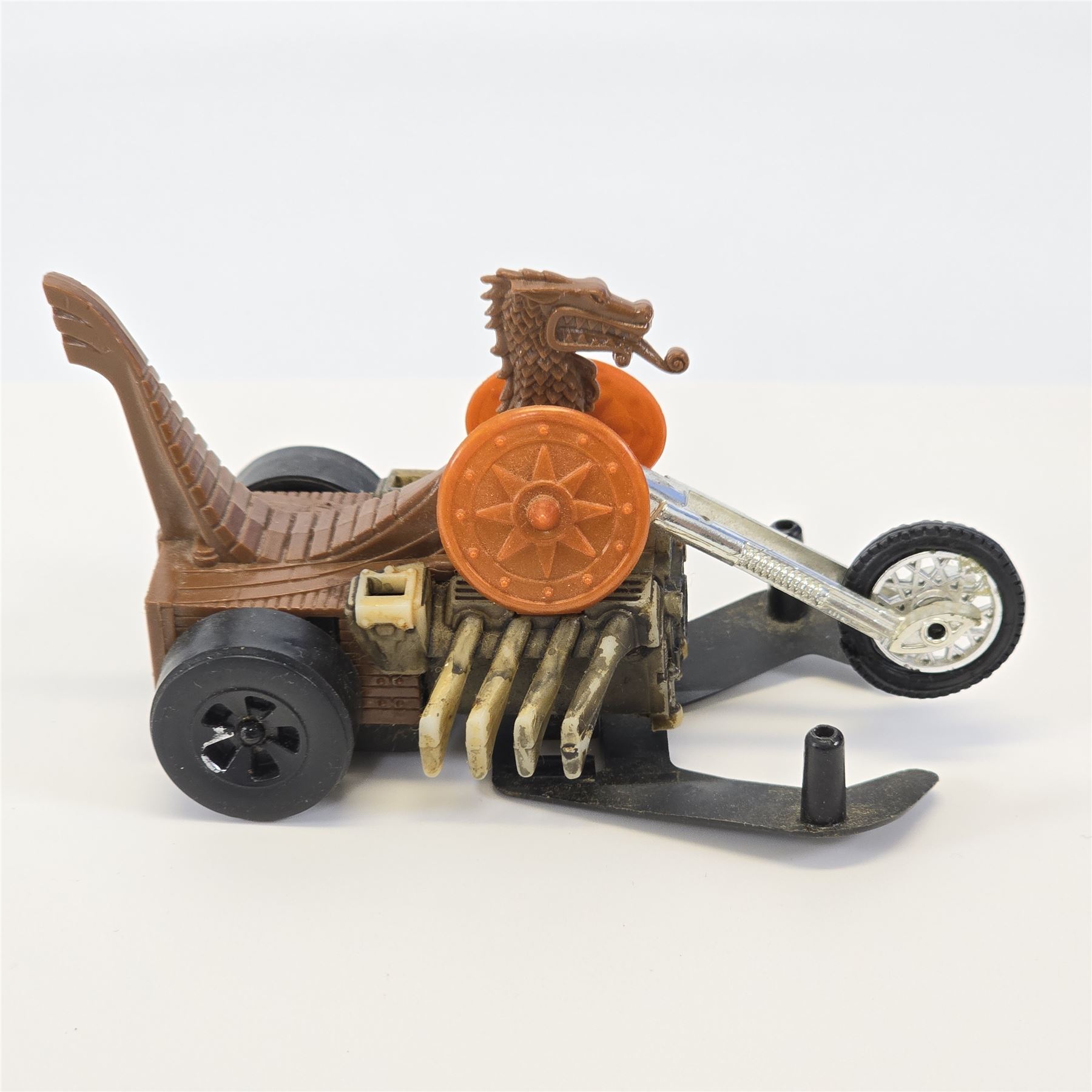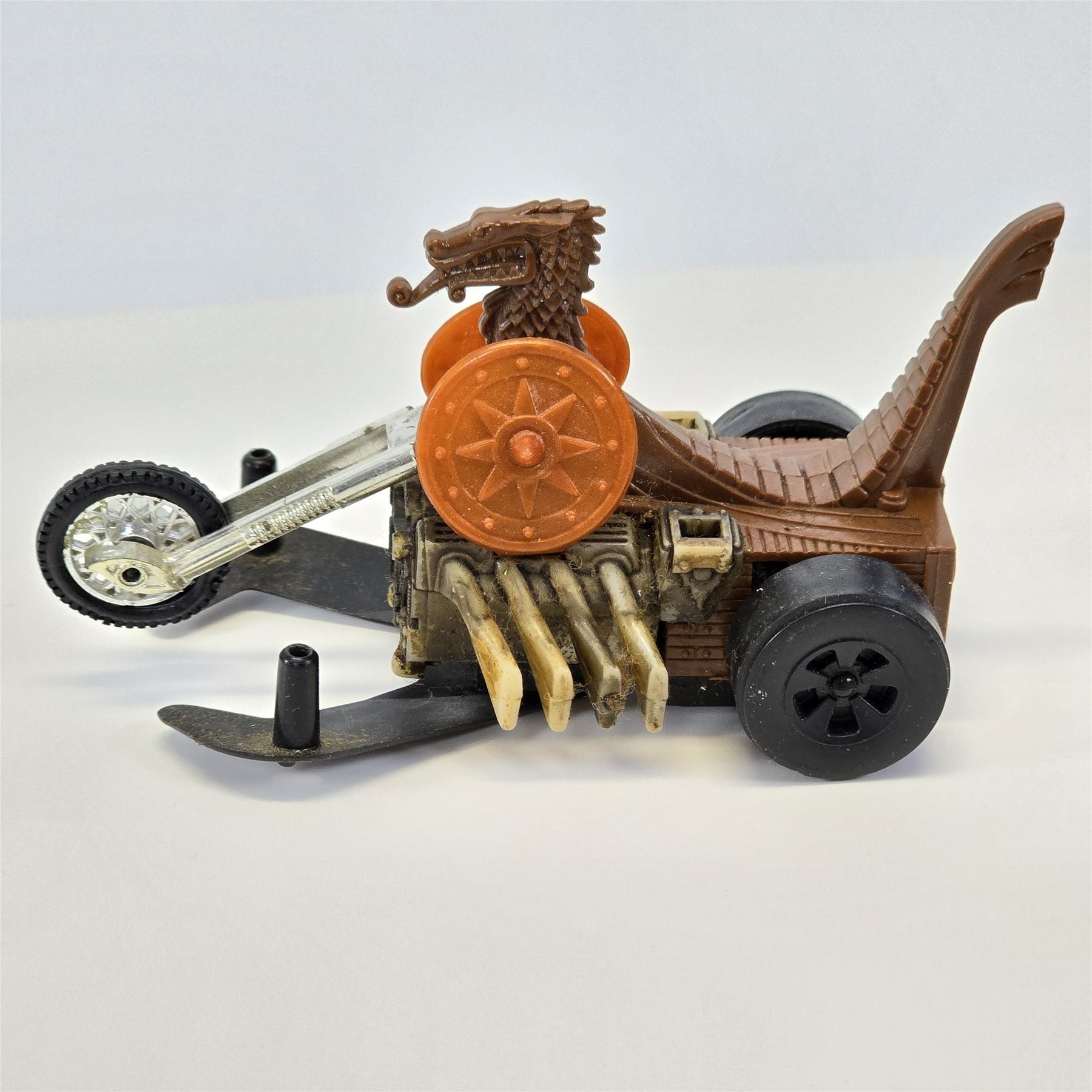 Overall nice condition with typical wear to chrome finish. Handlebars are missing, otherwise plastics appear all intact, No rider. Wheels are worn but intact. Bumper claw is intact.