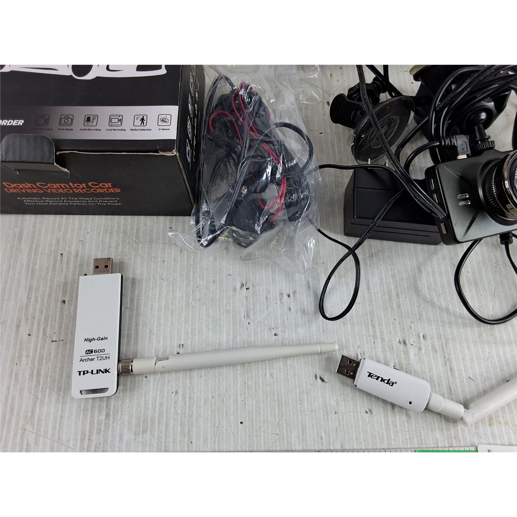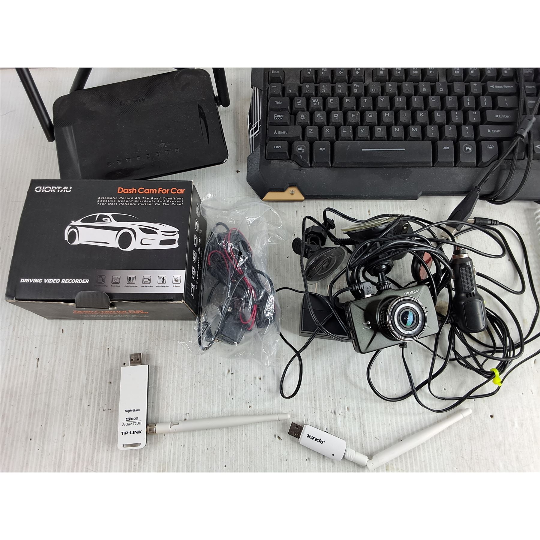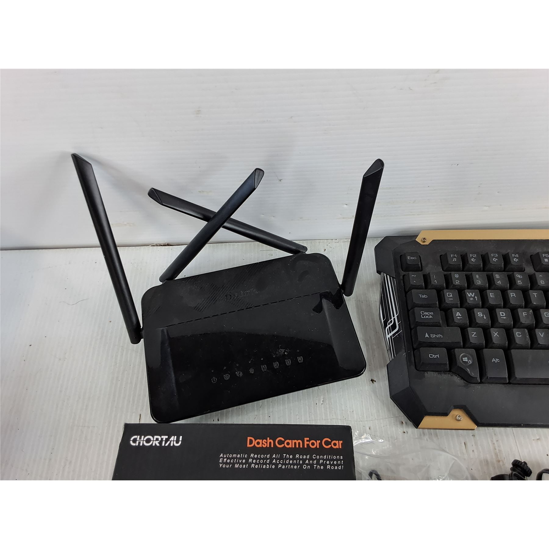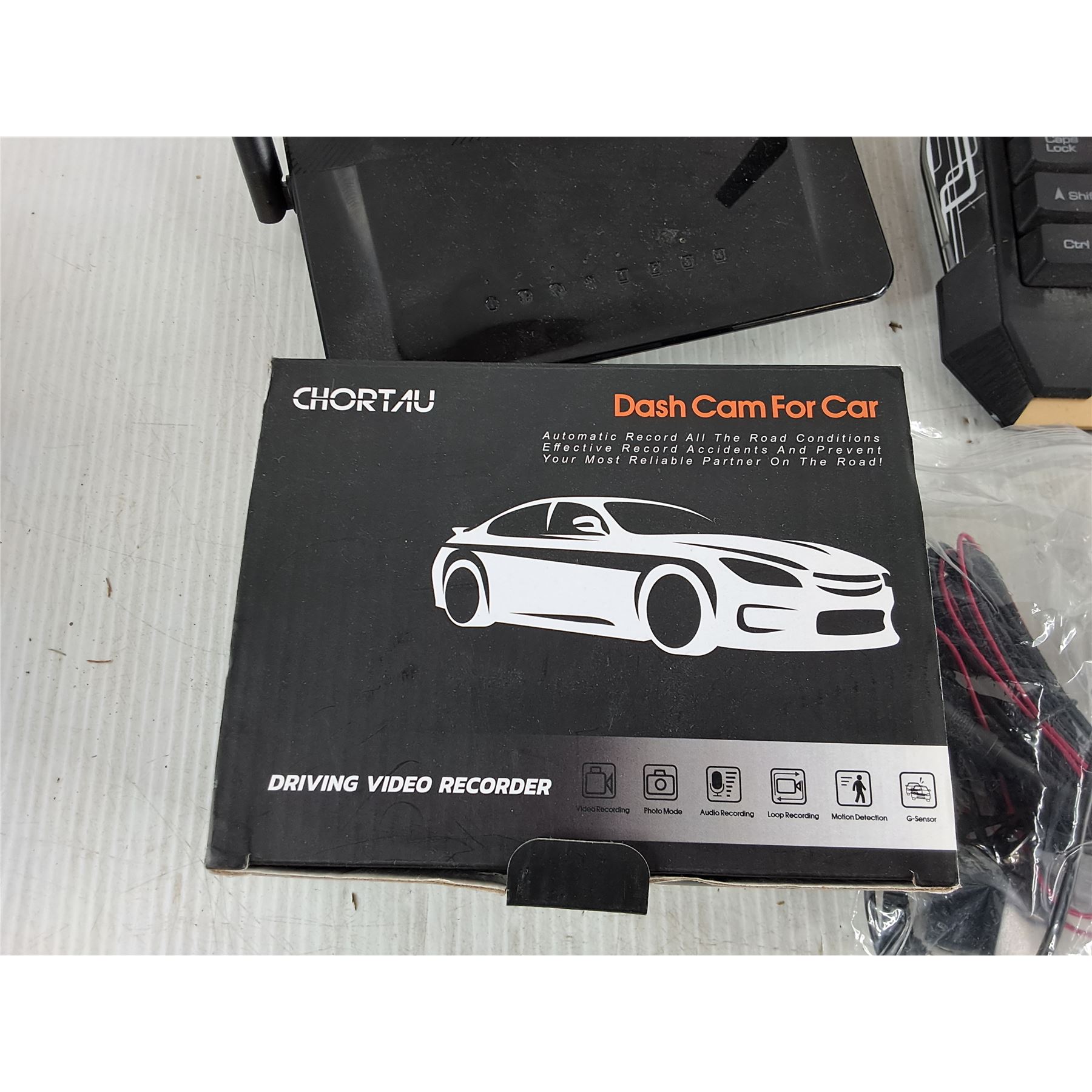 Chortau Dash Cam for Car, D Link WiFi Router, Thermaltake Keyboard, Misc, As Is