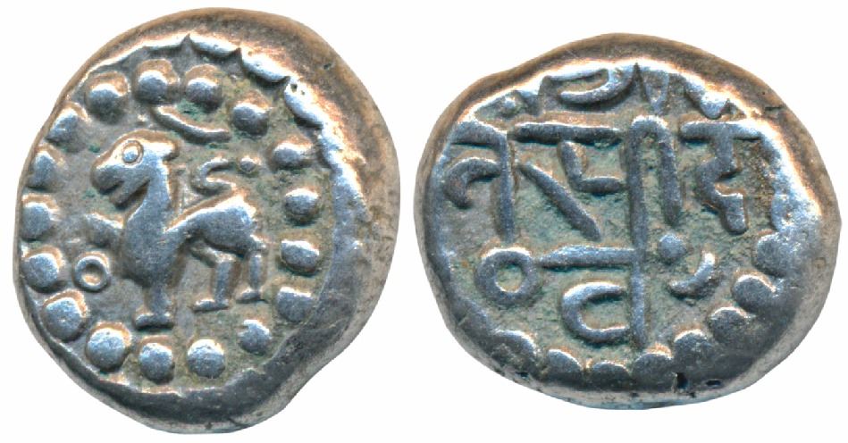 Chowhans of Ranthambhor, Jaitra Simha (c. 1275 AD), Silver Dramma, 4.0g, obv. lion facing to left; rev legend Jaitasi Deva (Deyell 366). Extremely Fine, Scarce.