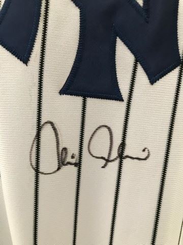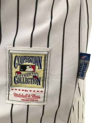 Chris Chambliss autographed official New York Yankees "Mitchell and Ness" size 52 jersey #10, from the 1949 world series Cooperstown authentic collection. 1952 Phil Rizzuto embroidered on the bottom right. Signed in black marker under the logo on the front. Original tags attached. Philip Francis Rizzuto (September 25, 1917 – August 13, 2007), nicknamed "the Scooter", was an American Major League Baseball shortstop. He spent his entire 13-year baseball career with the New York Yankees (1941–1956), and was elected to the National Baseball Hall of Fame in 1994.