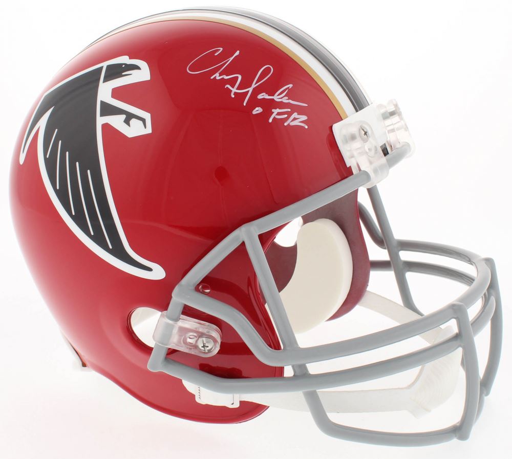 Atlanta Falcons full-size replica throwback helmet. Hand-signed in white paint pen by Chris Doleman (HOF).