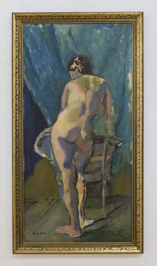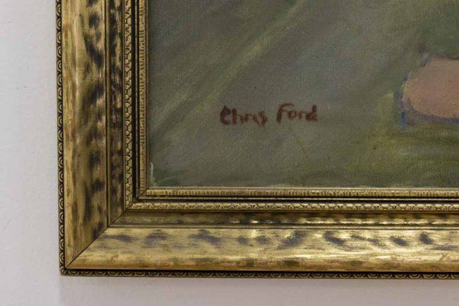 Oil on canvas. Signed lower left. Christine Ford, NYC artist, 20th century. Approx. 48" H x 24" W unframed, 52" H x 28" W framed.