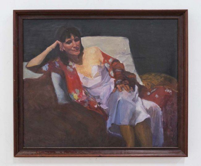 Oil on canvas. Signed lower left. Christine Ford, NYC artist, 20th century. Approx. 30" H x 36" W unframed, 34" H x 40" W framed. Scratches to frame.