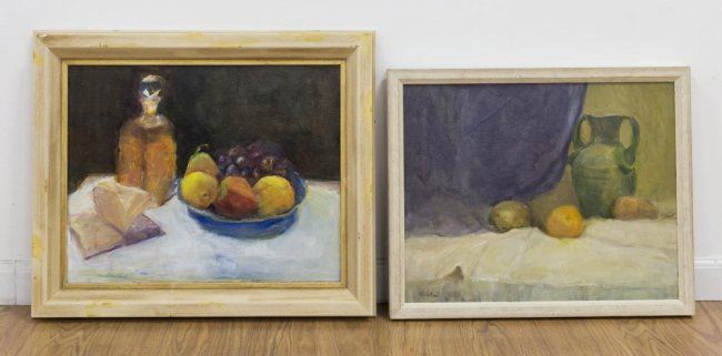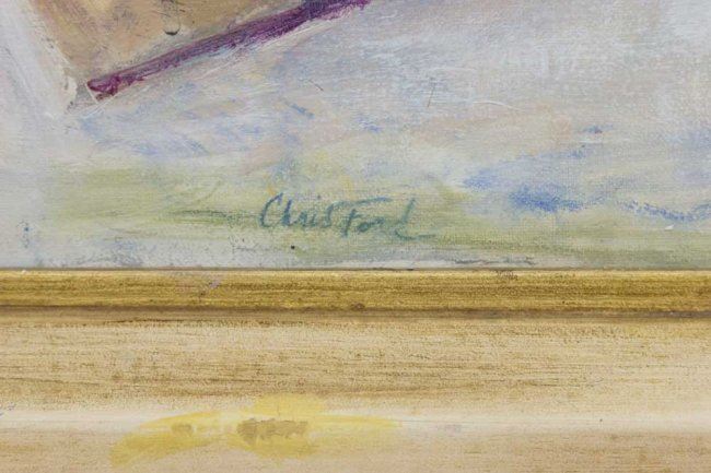 Oil on canvas. Both signed lower left. Christine Ford, NYC artist, 20th century. Larger approx. 16" H x 20" W sight, 20" H x 24" W framed. Smaller approx. 16" H x 20" W sight, 18" H x 22" W framed.
