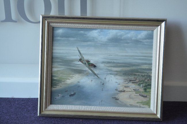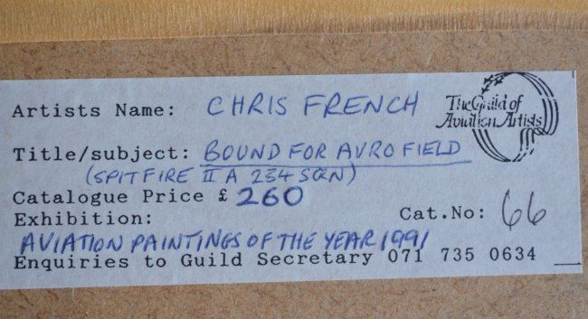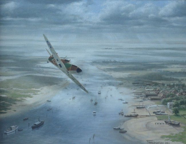 Chris French - "Bound for Avrofield, Spitfire 2, A 254 Squadron", contemporary oil, signed and dated 91 13 x 17in. (33 x 43cm)