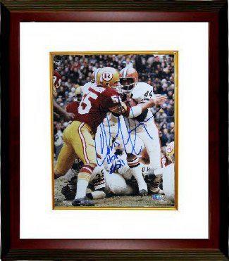 Chris Hanburger was drafted by the Redskins in the 18th and final round of the 1965 NFL Draft. As a pro, he was considered as one of the best linebackers of his era and was elected to the Pro Bowl nine times during his career, the most in Washington Redskin history. Hanburger earned the nickname "The Hangman" due to his penchant for clothesline tackles. He was a Four-time First-team All-Pro in 1972, 1973, 1975 and 1976 and a Second-team All-Pro in 1969 and 1974. Chris Hanburger was elected into the NFL Hall of Fame in 2011. Chris has hand autographed this Washington Redskins 8x10 Color Photo with HOF 2011 inscription. Steiner Sports Hologram and Certificate of Authenticity from Athlon Sports. Custom White Mat and Premium Mahogany Color Framed as shown.
