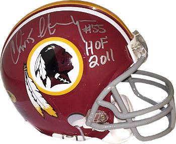 Chris Hanburger was drafted by the Redskins in the 18th and final round of the 1965 NFL Draft. As a pro, he was considered as one of the best linebackers of his era and was elected to the Pro Bowl nine times during his career, the most in Washington Redskin history. Hanburger earned the nickname "The Hangman" due to his penchant for clothesline tackles. He was a Four-time First-team All-Pro in 1972, 1973, 1975 and 1976 and a Second-team All-Pro in 1969 and 1974. Chris Hanburger was elected into the NFL Hall of Fame in 2011. Chris has hand autographed this Washington Redskins Maroon Riddell TB Mini Helmet with #55 HOF 2011 inscription (gray mask-style worn from 1972-1977). MAB Hologram and Certificate of Authenticity from Athlon Sports.