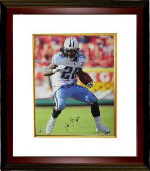 Chris Johnson, running back for the Tennessee Titans, had a break out rookie season. A 1st round draft pick, 24th overall, out of East Carolina, Johnson rushed for 1,228 Yards and 9 rushing TDs, while averaging 4.9 YPC during his rookie campaign, in addition to catching 43 passes for 280 yards. Johnson was selected to the Pro Bowl in just his first season in the NFL. Chris Johnson has hand signed this Tennessee Titans 16x20 Photo. Custom White Mat and Premium Mahogany Frame as shown. FI Holo, 4x6 Photo from the Signing, and Certificate of Authenticity from Athlon Sports. Private Signing in Brentwood, Tennessee on December 10th, 2009.