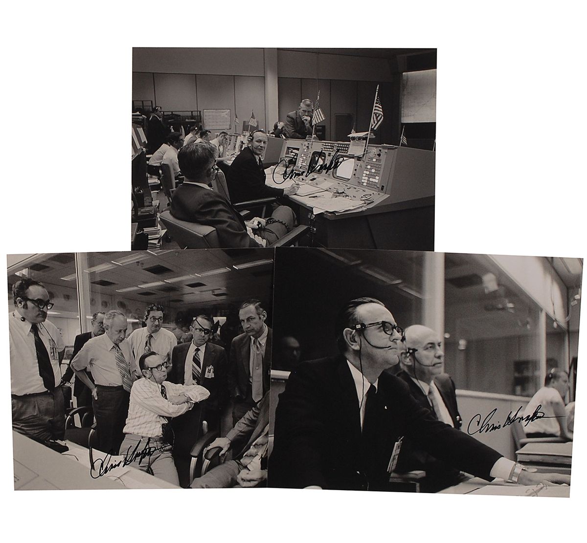 Three different satin-finish 10 x 8 photos of Kraft in Mission Control, each signed in black felt tip. In very fine condition.