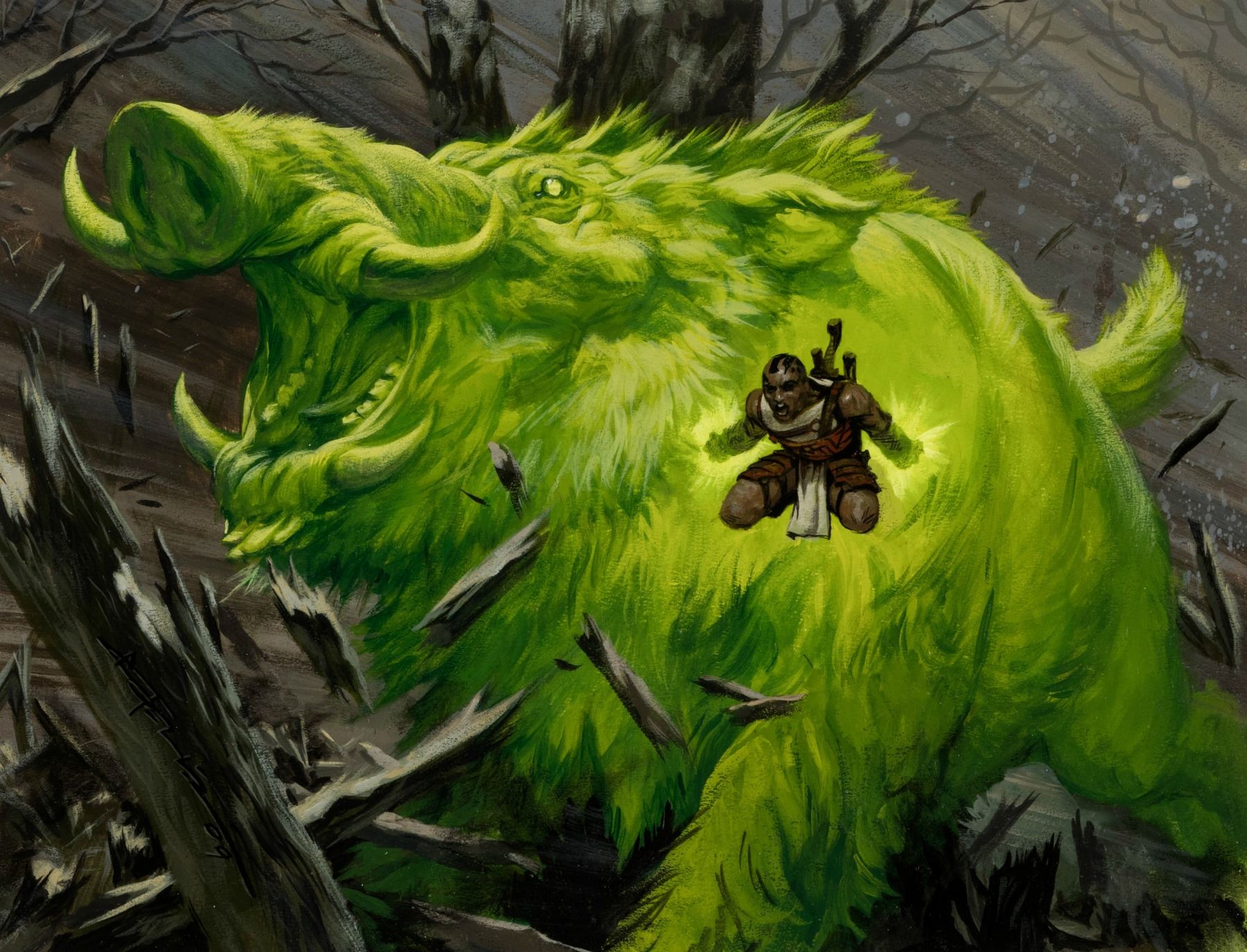 The Gathering: Rise of the Eldrazi Collectible Card Game "Boar Umbra" Painting Original Art (Upper Deck, 2010).