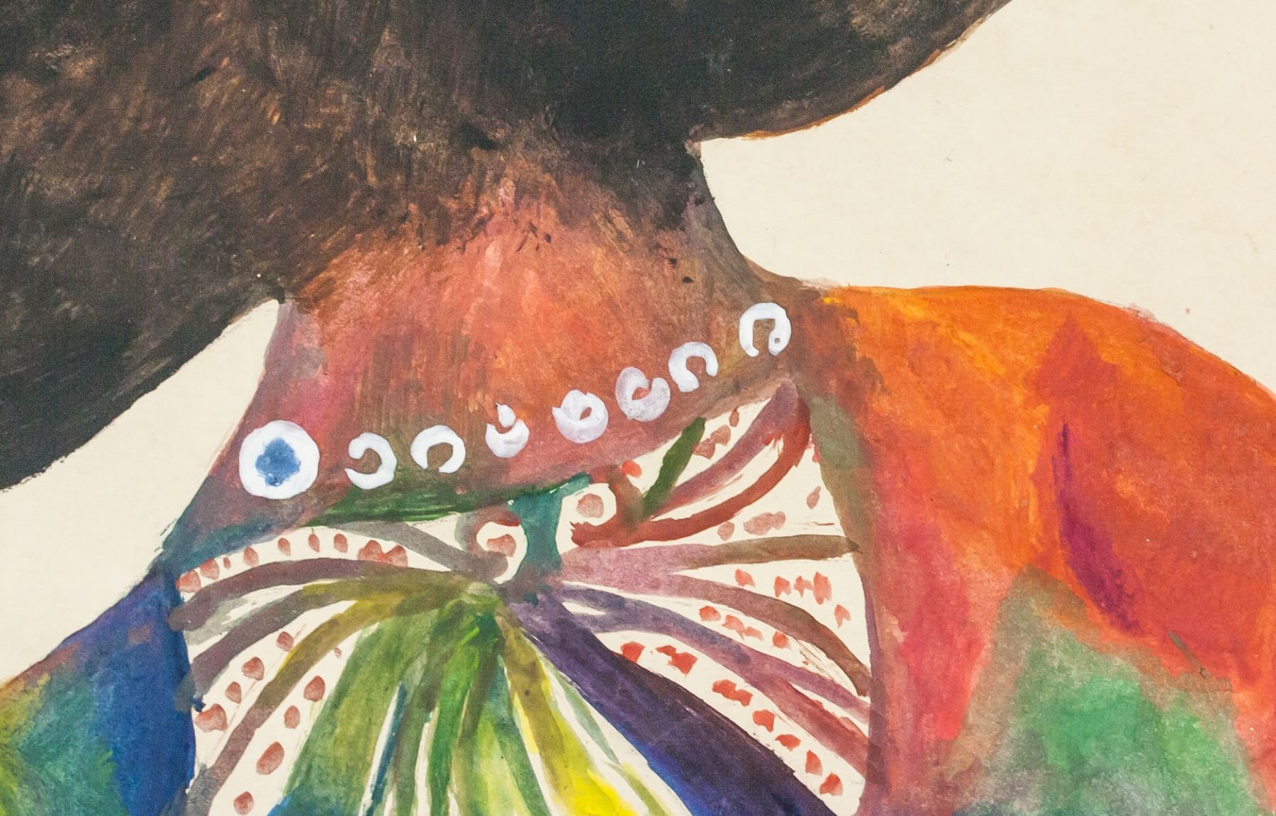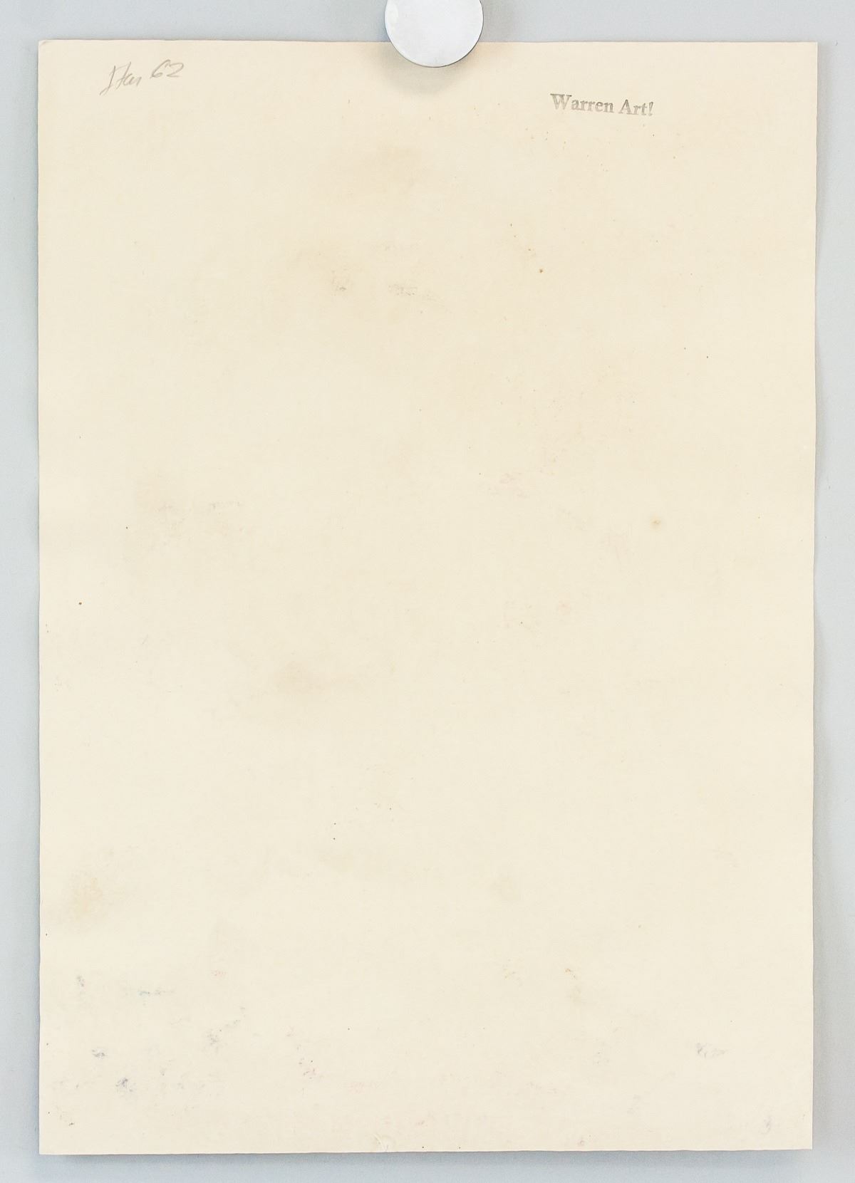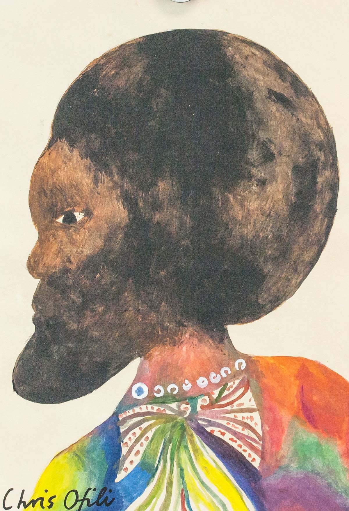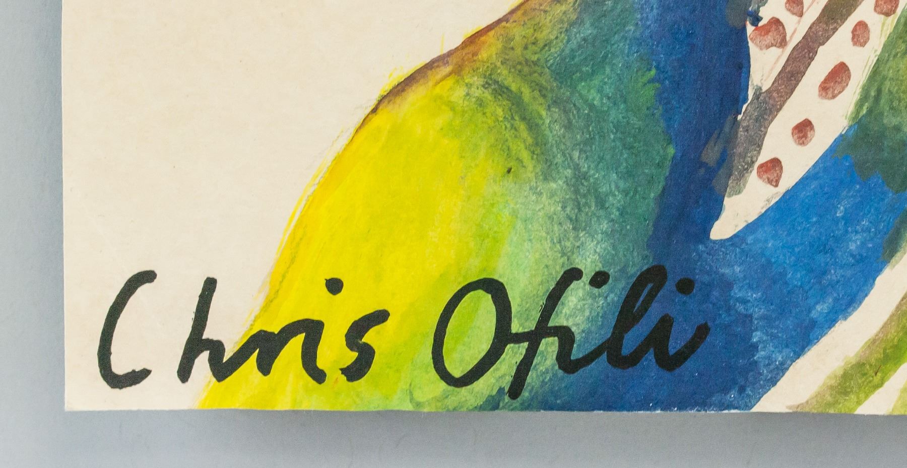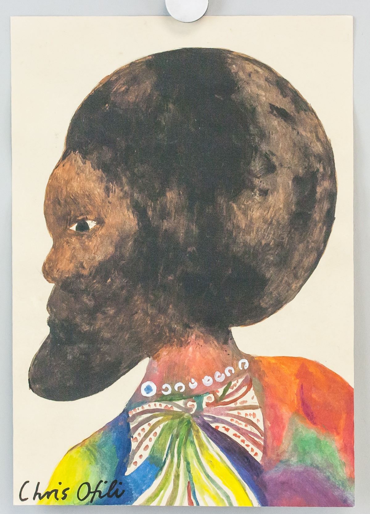 Watercolor on paper. Featuring profile portrait of a man in colorful clothing. Signed "Chris Ofili" in the bottom left corner. "[illegible] 62" inscribed on verso. "Warren Art!" stamped on verso. Attributed to Chris Ofili (1968- , British). 28.5 x 20 cm (11.35 x 8 in). Provenance: This lot carries limited provenance from a Southern Ontario estate