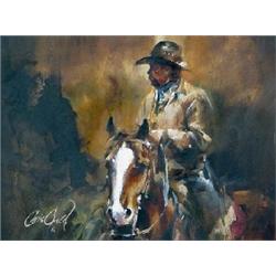 Chris Owen (b.1967) (Montana) Gouache, Cowboy, sight size 10" x 12.75, signed lower right, Est $1,500 - $3,000