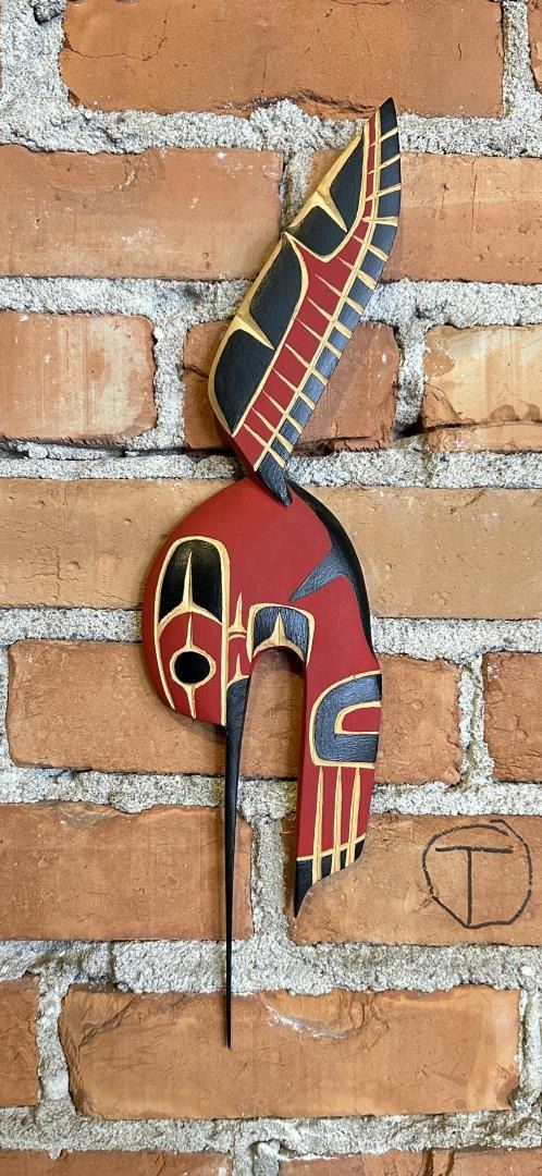16 1/4" long by 4 1/4" wide. Chris P. Joseph was born in North Vancouver, British Columbia, Canada. He is a member of Squamish Tribe of Coast Salish Nation, which is located in the southern region of the British Columbia. Chris Joseph's interests in carving started at a very early age and he has been creating Coast Salish Contemporary Art for over thirty years. He credits his father Willard Joseph, his cousin Floyd Joseph and his elders Marvin Dana Baker and Jacob B. Lewis for influencing him to begin carving