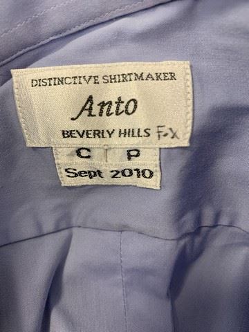 Chris Pine's personal blue "Anto Beverly Hills" dress shirt worn at the Unstoppable (2010) premiere. His initials are sewn into the tag with "Sept 2010". "FX" also written on the inside tag.