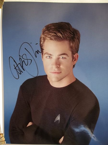 Large 11x14 color photo from the new Star Trek films signed by Chris Pine.