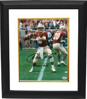 Chris Rix is the first and only four year starter at quarterback (2001-2004) in the school's history under Bobby Bowden. Despite a severe ankle injury suffered early during his senior season, Rix ranks second in every major passing category at FSU. During Rix's career at Florida State, the Seminoles claimed 3 Atlantic Coast Conference (ACC) titles and appeared in 4 straight bowl games. Chris Rix has hand autographed this Florida State Seminoles 8x10 Color Photo. Custom White Mat and Premium Black Framed as shown. FI Hologram and Certificate of Authenticity from Athlon Sports.