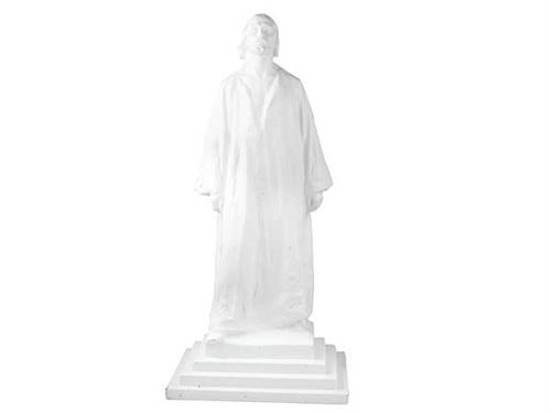 Porcelain faience, with white glaze. Stepped base with Christ figure. Minor chips. Number impressed on the bottom: (8179) round seal like mark. Zsolnay, Pécs, 1909-10. Size: 51 cm