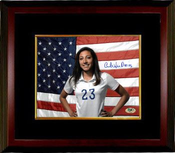 Christen Press is an American soccer forward and World Cup champion. She currently plays for the Chicago Red Stars of the National Women's Soccer League and the United States women's national soccer team. In 2015, she represented the United States at the FIFA Women's World Cup. Christen Press has hand signed this 8x10 Photo. MAB Hologram and Certificate of Authenticity from Athlon Sports Collectibles. Custom Black Mat and Premium Mahogany Frame as shown