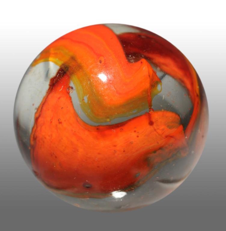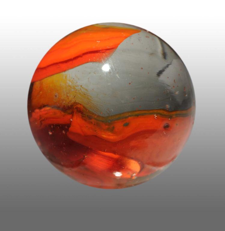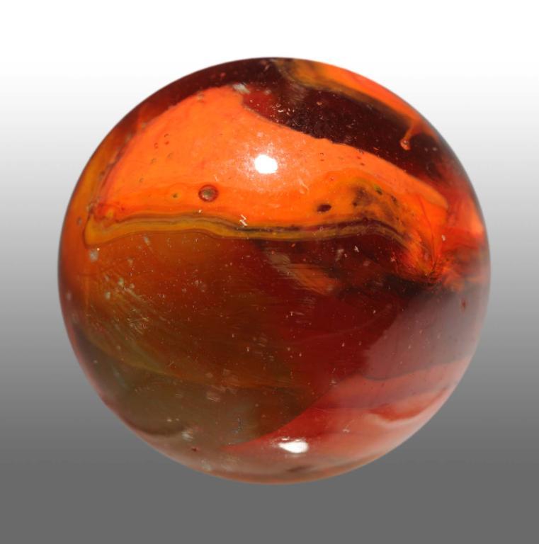 Electric orange and clear banded transparent. Size 5/8" Dia.