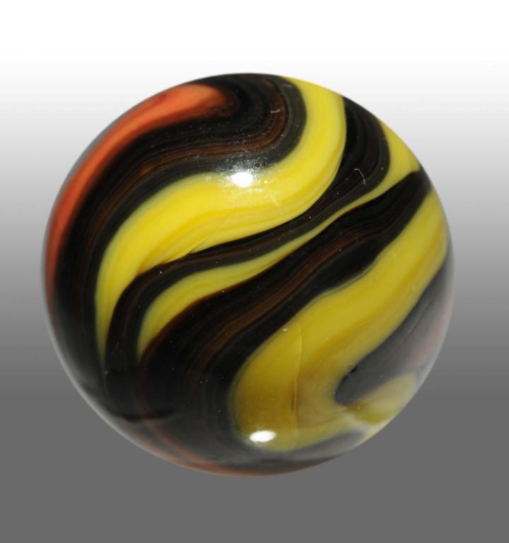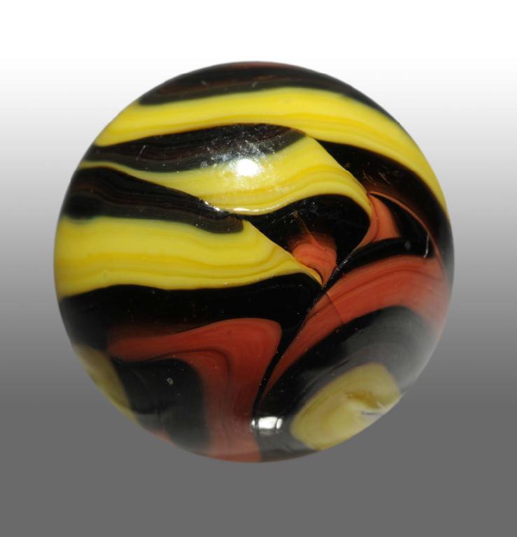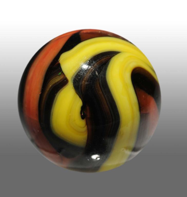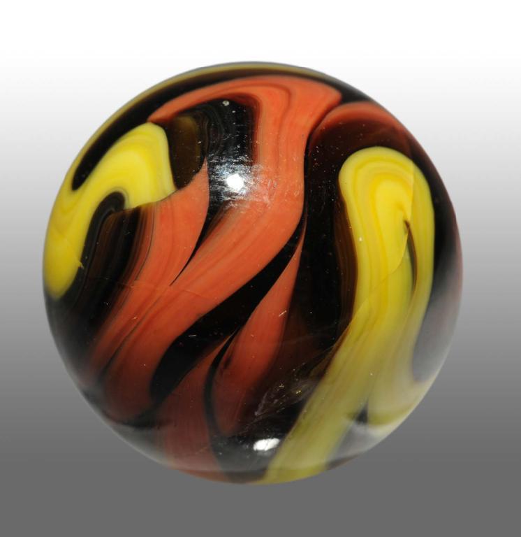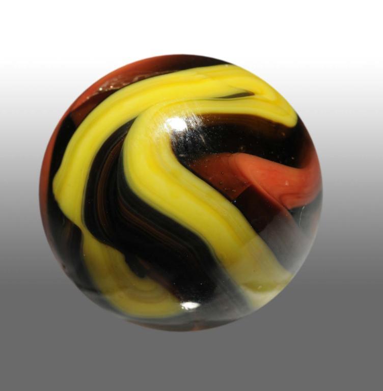 Swirls of black, salmon and yellow. Size 19/32" Dia.
