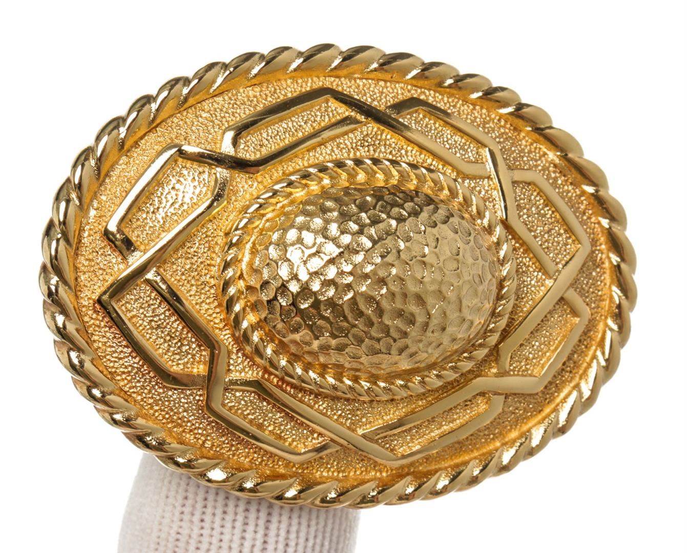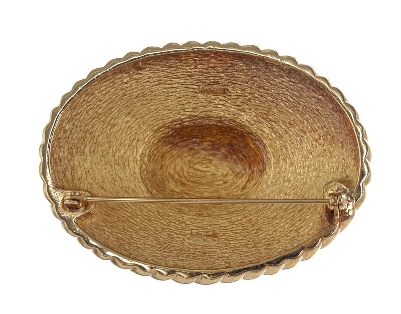 One Christian Dior Gold Chain Round Brooch. Item is sold AS-IS. All available information is listed in the description and shown in the photo. Gold Round Christian Dior brooch with chain pattern and gold-tone hardware.