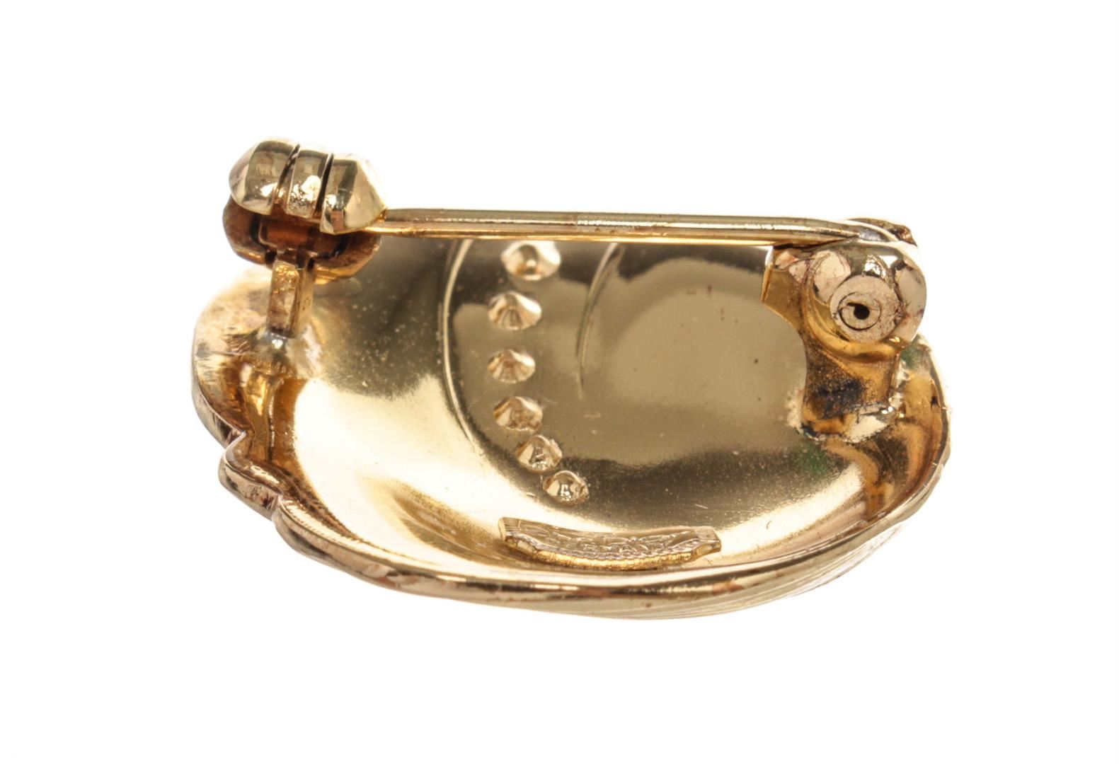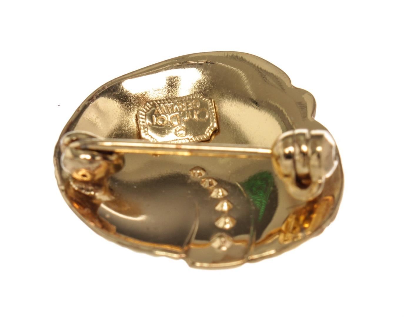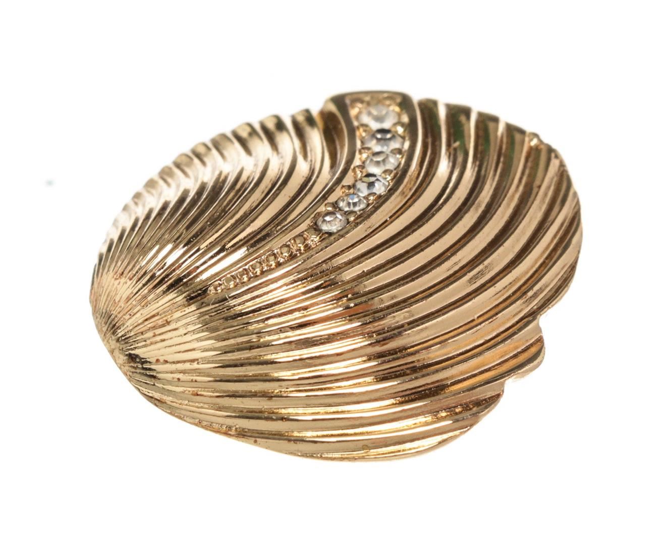 One Christian Dior Gold Rhinestone Shell Brooch. Item is sold AS-IS. All available information is listed in the description and shown in the photo. Christian Dior Gold Rhinestone Shell Brooch with gold-tone hardware.