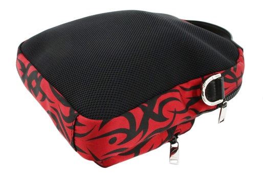 Christian Dior Red Black Nylon Tribal Rider Print Pattern Mini Shoulder Bag. All available information is listed in the description and shown in the photos. Christian Dior Mini shoulder bag features red and black nylon with Rider Tribal pattern print, silver-tone hardware, detachable black canvas shoulder strap, front pocket with zipper closure, top flat leather handle, zipper closure at top that will open to black canvas-lined interior with one slip pocket. Height 9", Width 7.5", Depth 2"