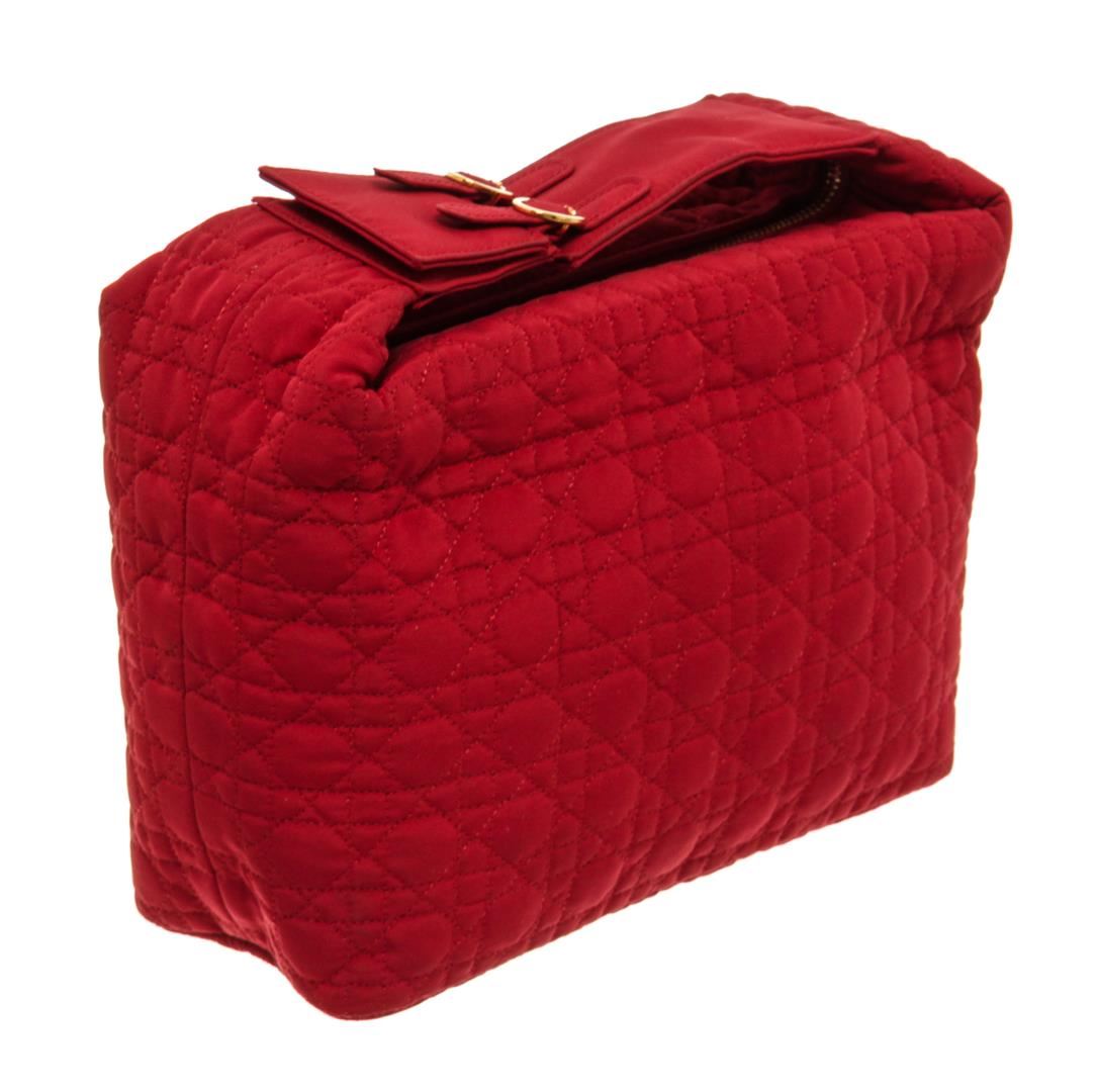 One Christian Dior Red Trotteur Small Pouch. Item is sold AS-IS. All available information is listed in the description and shown in the photo. Christian Dior Red Trotteur Small Pouch with gold-tone hardware, interior slip pockets, black canvas interior, and a gold zipper closure.