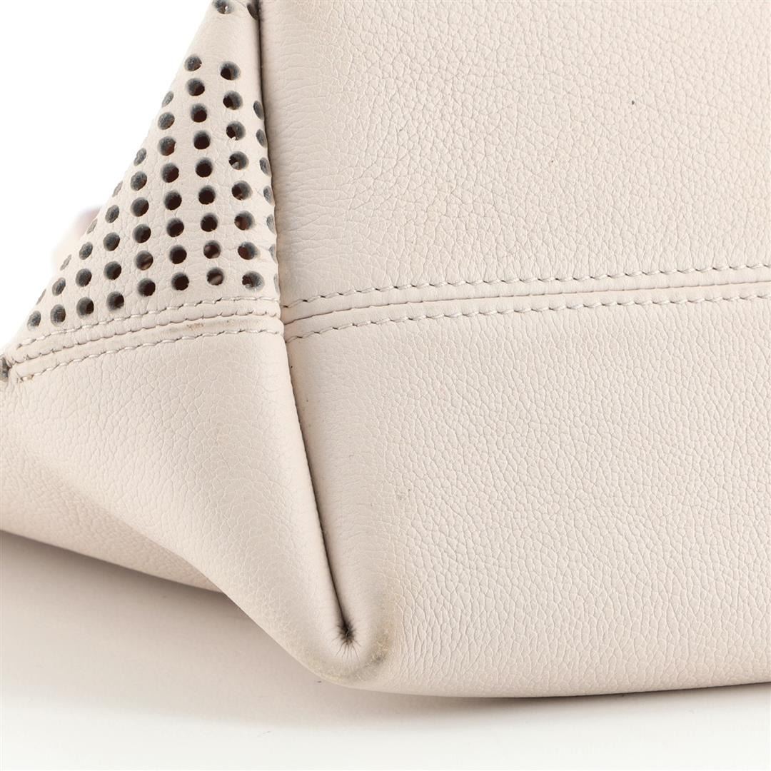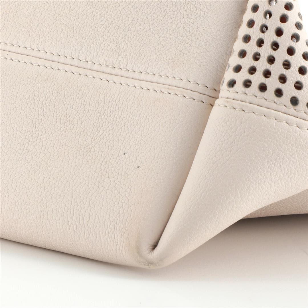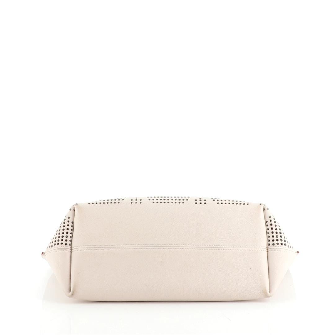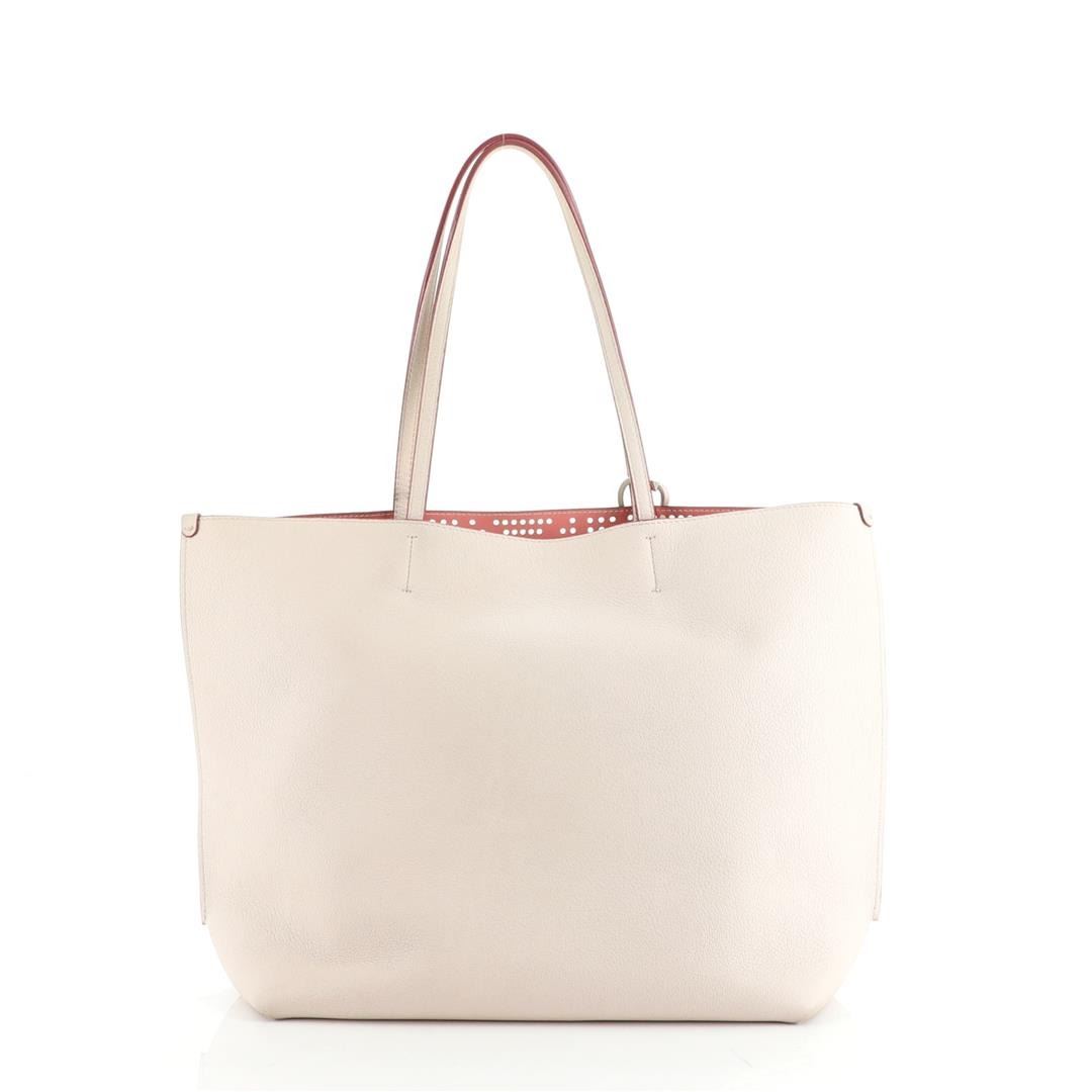 One Christian Dior Shopping Tote Perforated Leather Medium. Item is sold AS-IS. All available information is listed in the description and shown in the photo. Christian Dior Shopping Tote Perforated Leather Medium. Moderate cracking on handle base and opening trim wax edges, heavy wear and darkening on base corners, minor creasing on exterior. Glue stains on base, scratches on hardware. 78848