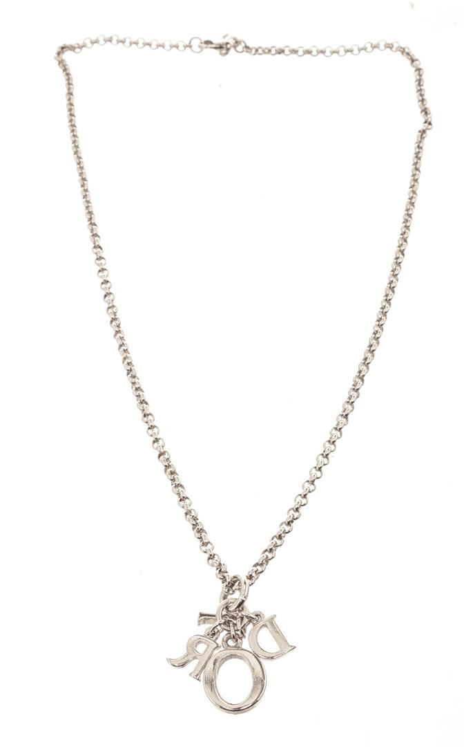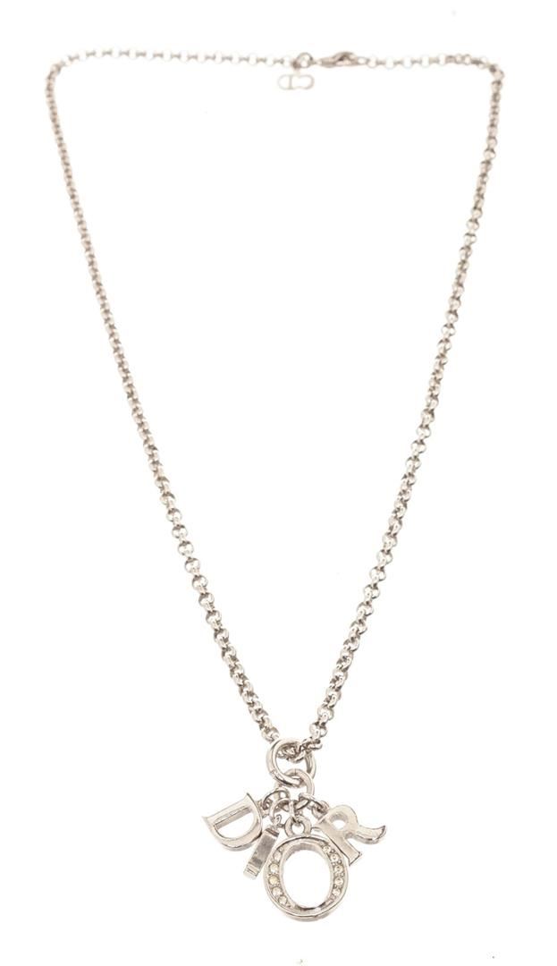 Christian Dior Silve Rhinestone Necklace with gold-tone hardware.