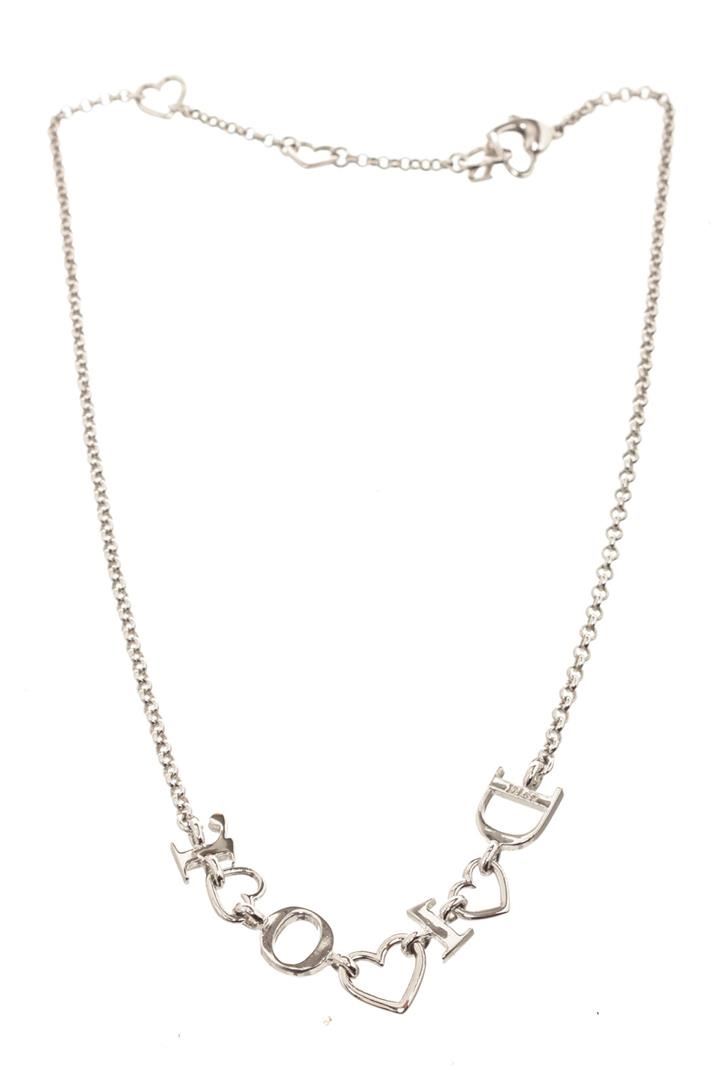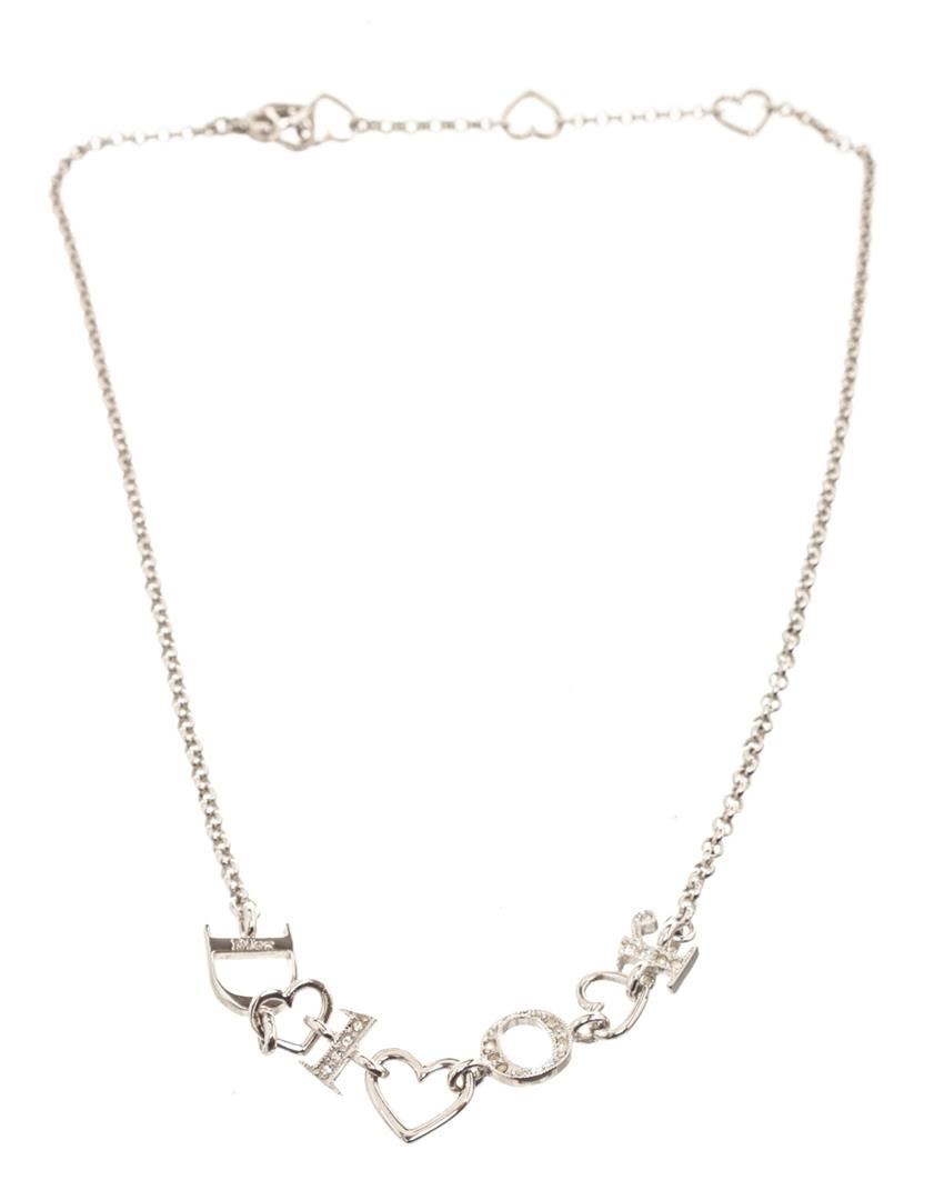 Christian Dior Silve Rhinestone Necklace with gold-tone hardware.