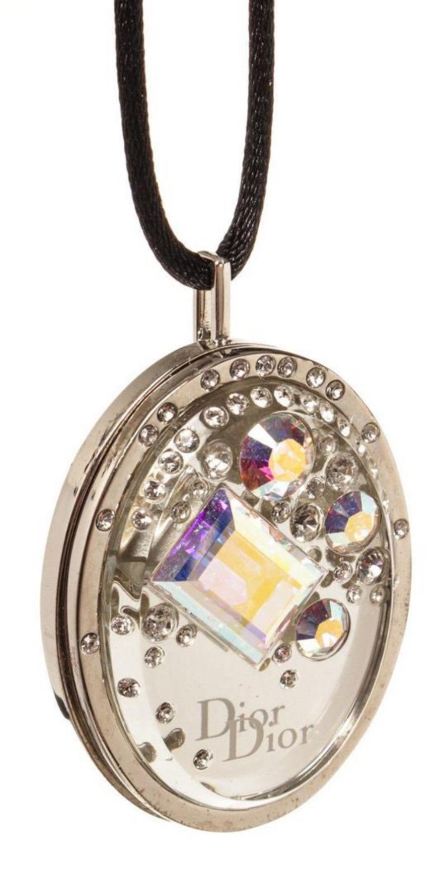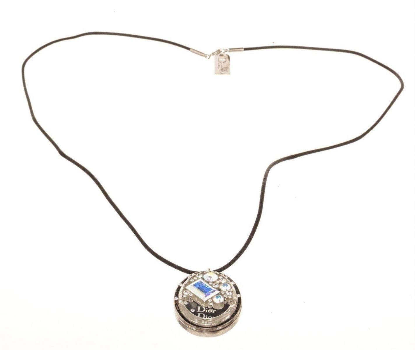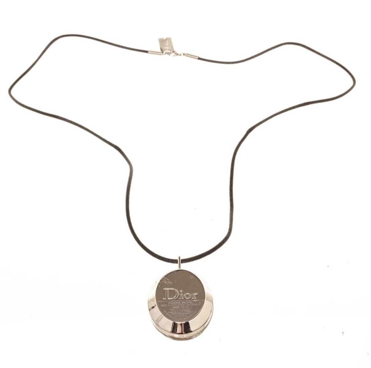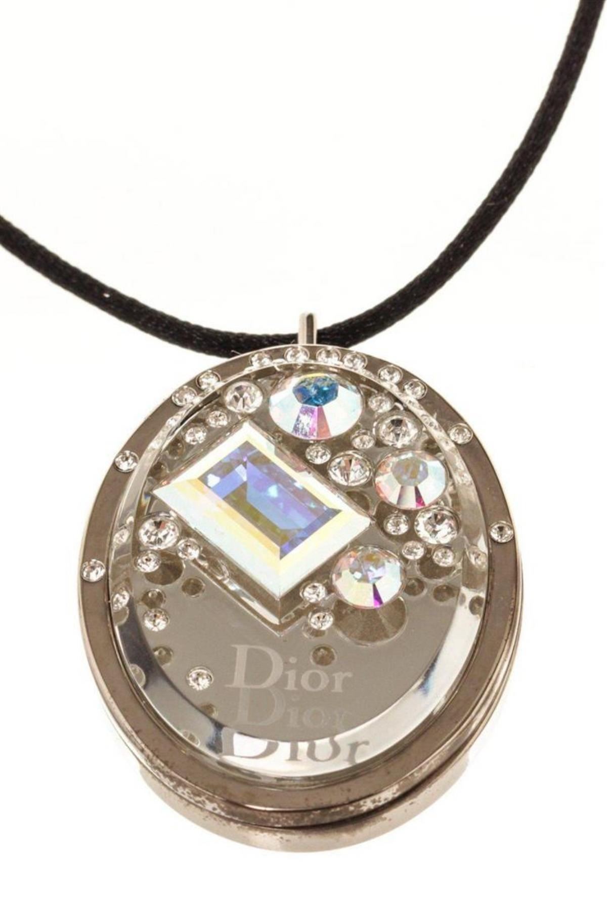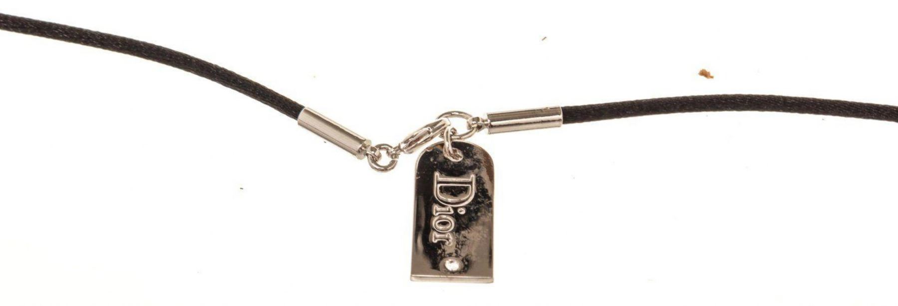 Christian Dior Silver Logo Gem Necklace with silver-tone hardware.