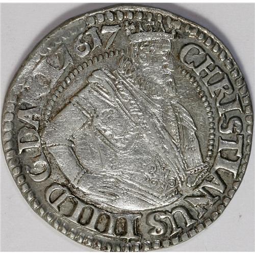<B>Christian IIII Mark 1617, </B></I>KM52, sharp XF, very nice details, lightly cleaned long ago.
