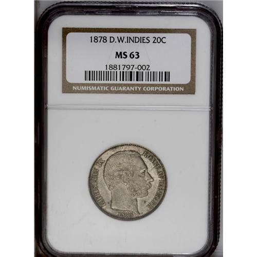 Christian IX 20 Cents 1878, KM71, MS63 NGC, deeply tone