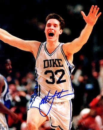 Christian Laettner played college basketball for the Duke University Blue Devils. He was the only college player selected for the 1992 United States men's Olympic team, nicknamed the "Dream Team". This famous shot highlighted his storied college career as a four year starter, four year Final Four participant, two time NCAA champion (91 & 92) and the 1992 AP Player of the Year. This shot was a buzzer beater in the regional final to defeat the Kentucky Wildcats 104-103 in what many consider the greatest game of all-time. Christian Laettner has hand signed this Duke Blue Devils Arms Up Celebration 8x10 Photo 1992 Game Winner vs Kentucky. Schwartz Sports Hologram and Certificate of Authenticity from Athlon Sports.